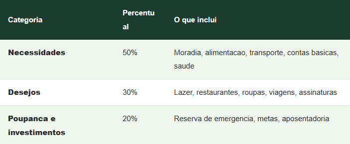 Um dos métodos mais simples e eficazes para quem está começando é a regra 50-30-20: